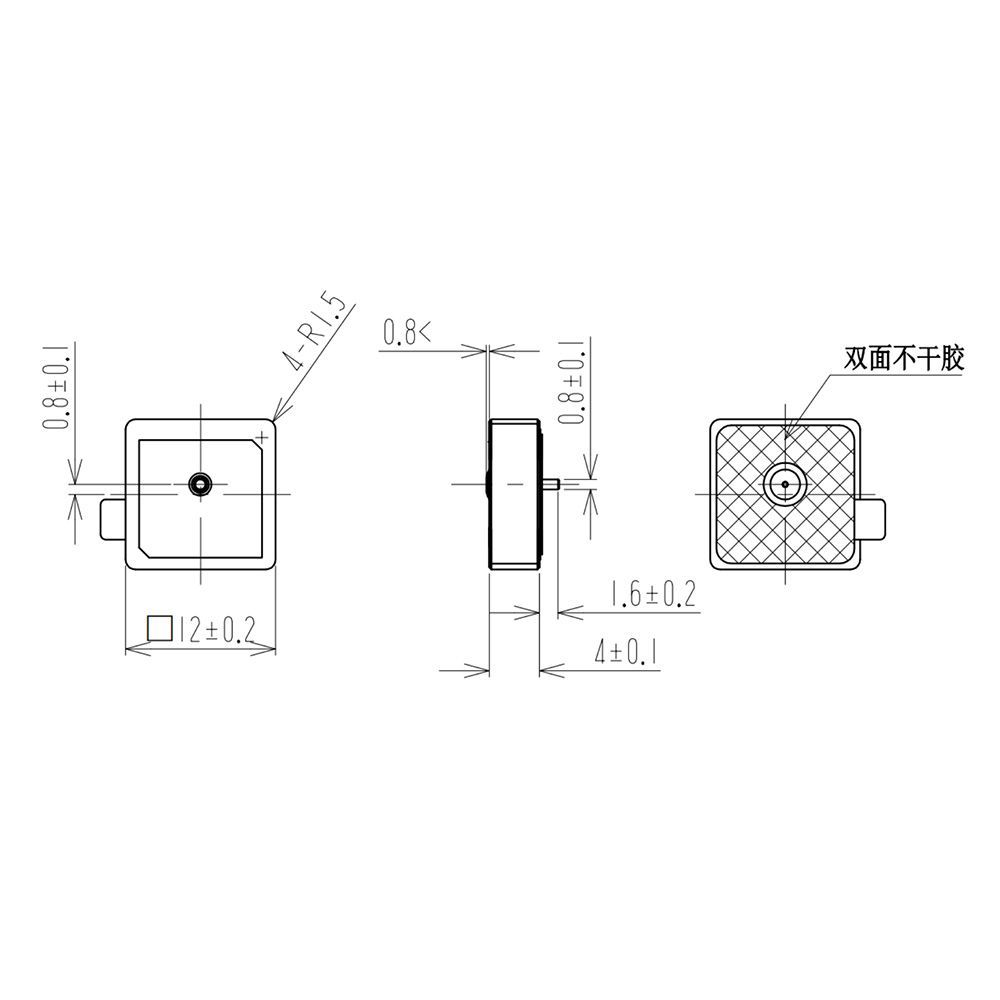 12x12x4mm GPS/GLONASS/GALILEO/BeiDou Passive Patch Antenna